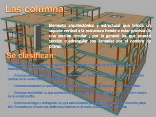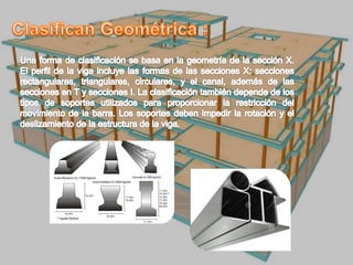 Este documento describe diferentes tipos de cargas que actúan sobre una estructura y los perfiles de acero estructural más comunes. Las cargas vivas son dinámicas y dependen del uso del espacio, mientras que las cargas muertas son estáticas y dependen del peso de la estructura. Las cargas accidentales son transitorias. Los perfiles de acero estructural más usados incluyen HEB, U, ángulos, tubos circulares y cuadrados, y placas.