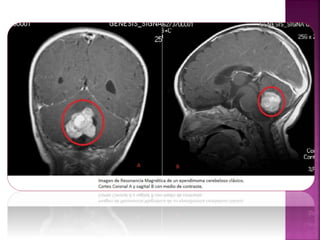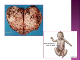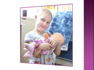 El documento describe los diferentes tipos de cáncer infantil, incluyendo leucemia, tumores del sistema nervioso central, tumores óseos, linfomas, neuroblastoma, rabdomiosarcoma y tumor de Wilms. Explica que el cáncer infantil afecta a niños de diferentes formas que el cáncer en adultos y que, aunque los tratamientos han mejorado, sigue siendo importante la detección temprana para mejorar las tasas de supervivencia.