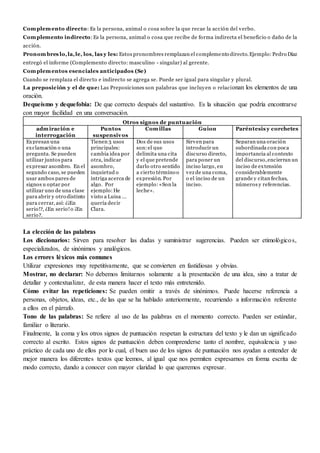 Este documento explica los diferentes tipos de comas y otros signos de puntuación, incluyendo comas de enlace, explicativas, vocativas, circunstanciales, enumerativas y bibliográficas. También discute el uso de pronombres átonos, complementos directos e indirectos, y errores comunes como la repetición excesiva. En general, la coma y otros signos de puntuación son importantes para estructurar correctamente un texto y darle significado.