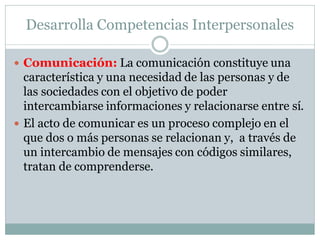 Este documento trata sobre los tipos de comunicación y la comunicación efectiva. Resume los tipos de comunicación como directa e indirecta, señalando sus ventajas y desventajas. Luego describe la comunicación organizacional y efectiva, destacando la importancia de percibir cómo otros perciben el mundo y adaptar el lenguaje a cada oyente para lograr la comprensión. Finalmente, enumera las características de la comunicación efectiva como flexibilidad, claridad de objetivos, calidad en el actuar y adaptación del lenguaje.