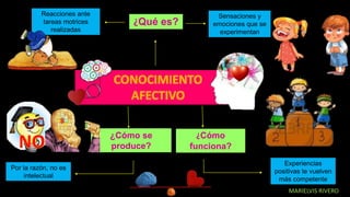 Este documento presenta información sobre los tipos de conocimiento en el aprendizaje: afectivo, cognitivo y psicomotriz. Incluye definiciones de cada tipo de conocimiento y su importancia para el desarrollo del individuo. También describe la taxonomía de Bloom, la cual clasifica los niveles de dominio del conocimiento, desde lo más simple como la memorización hasta la evaluación. El documento fue creado por integrantes de la facultad de humanidades de la Universidad Yacambu.