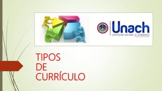 El documento describe diferentes tipos de currículo: el currículo oficial que es dinámico y sirve de base para la enseñanza, el currículo operacional que refleja lo enseñado y aprendido, el currículo oculto que transmite valores implícitos, el currículo nulo que incluye elementos no implementados, y el currículo extracurricular que son experiencias voluntarias fuera del plan de estudios oficial.