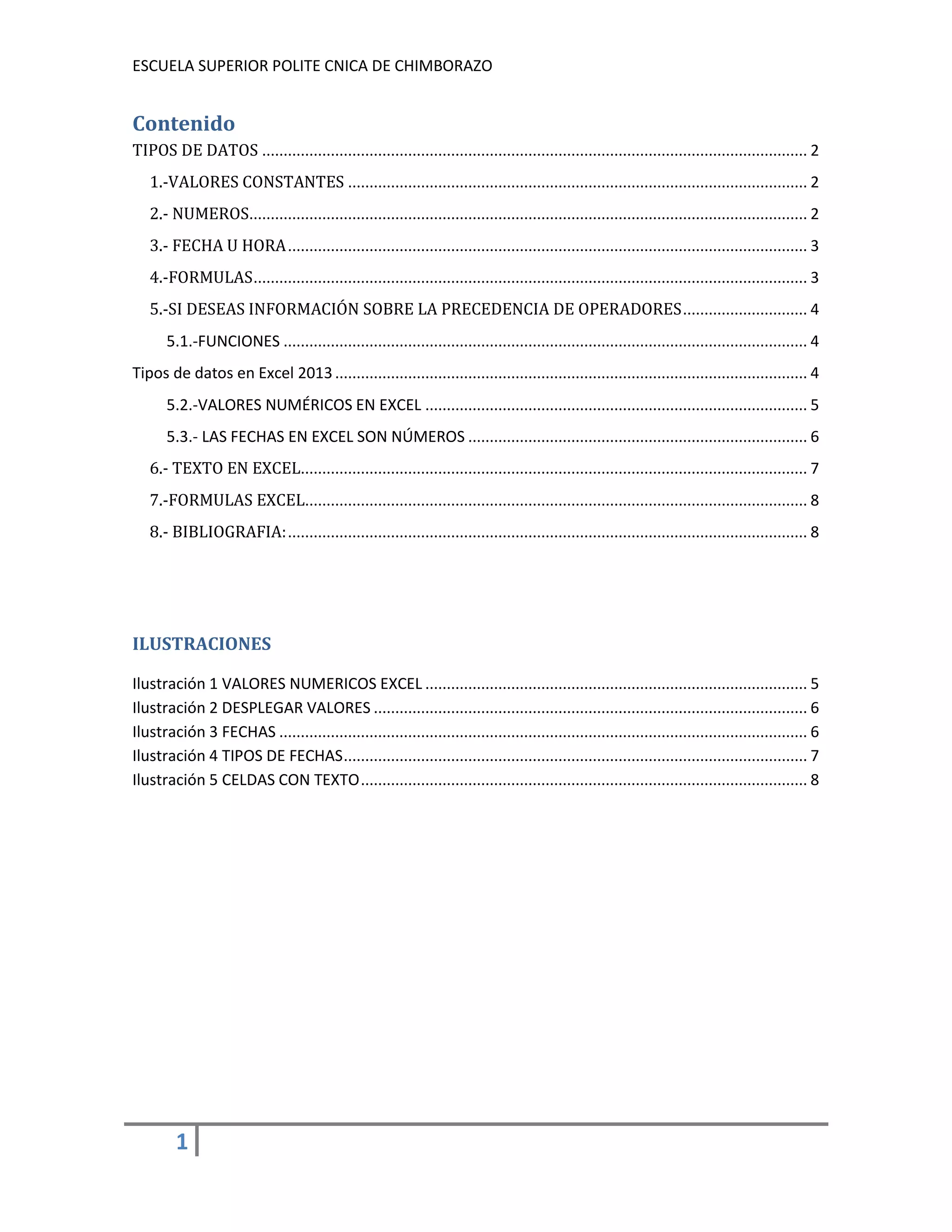 Este documento describe los diferentes tipos de datos que se pueden ingresar en Excel, incluyendo valores numéricos, fechas, texto y fórmulas. Explica que los valores numéricos y fechas son almacenados internamente como números y pueden ser formateados de diferentes maneras para su visualización. También cubre conceptos como el formato de celdas, funciones y operadores matemáticos usados en fórmulas.