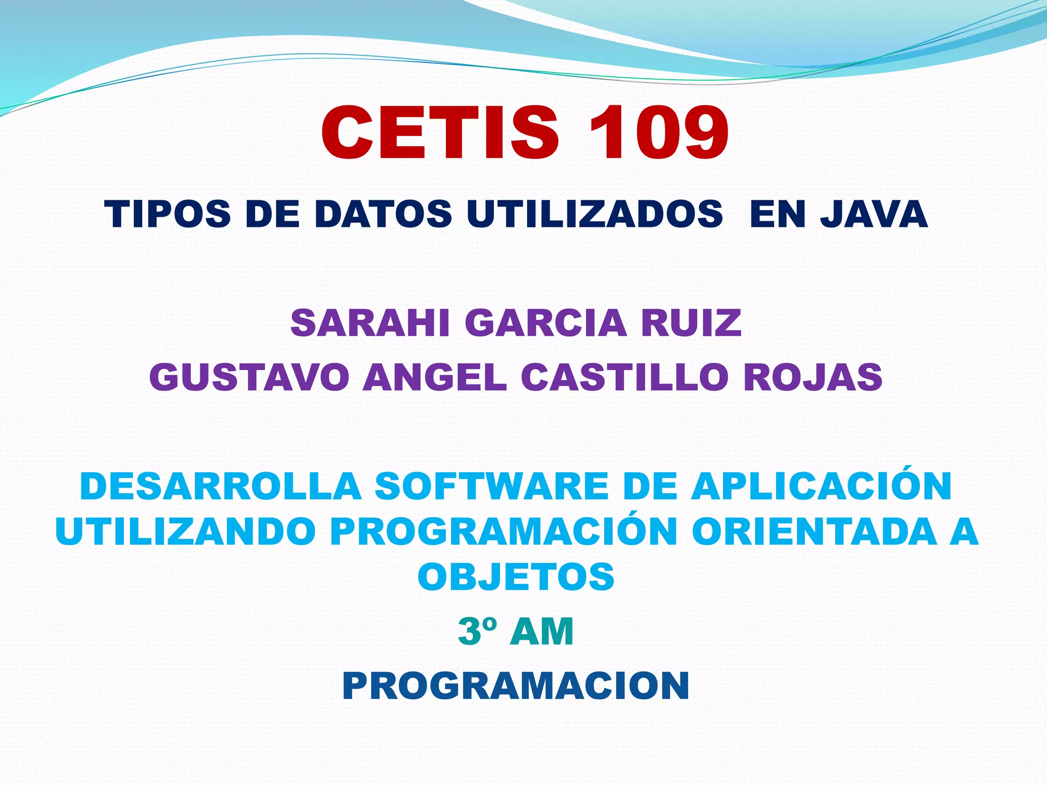 Este documento describe los principales tipos de datos primitivos en Java como byte, short, int, long, float, double, char y boolean. También cubre los tipos de datos de la biblioteca estándar como String y arrays, así como los tipos de datos definidos por el programador.