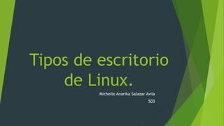 Este documento describe los diferentes tipos de escritorios de Linux, incluyendo Gnome clásico, Gnome 3 con Gnome Shell, Unity de Ubuntu, KDE y Plasma, Xfce, Cinnamon, Enlightenment, Fluxbox y LXDE. Cada escritorio se caracteriza por su apariencia, funcionalidad y uso de recursos. El autor concluye que aprendió sobre las diversas opciones de escritorios disponibles en Linux.