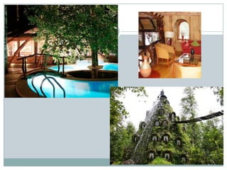 Este documento describe diferentes tipos de hoteles, incluyendo hoteles de naturaleza situados cerca de áreas naturales, hoteles balnearios ubicados en instalaciones de baños medicinales, albergues turísticos económicos para grupos, y hoteles gastronómicos enfocados en ofrecer una experiencia culinaria exclusiva. Se proveen ejemplos de cada tipo de hotel.