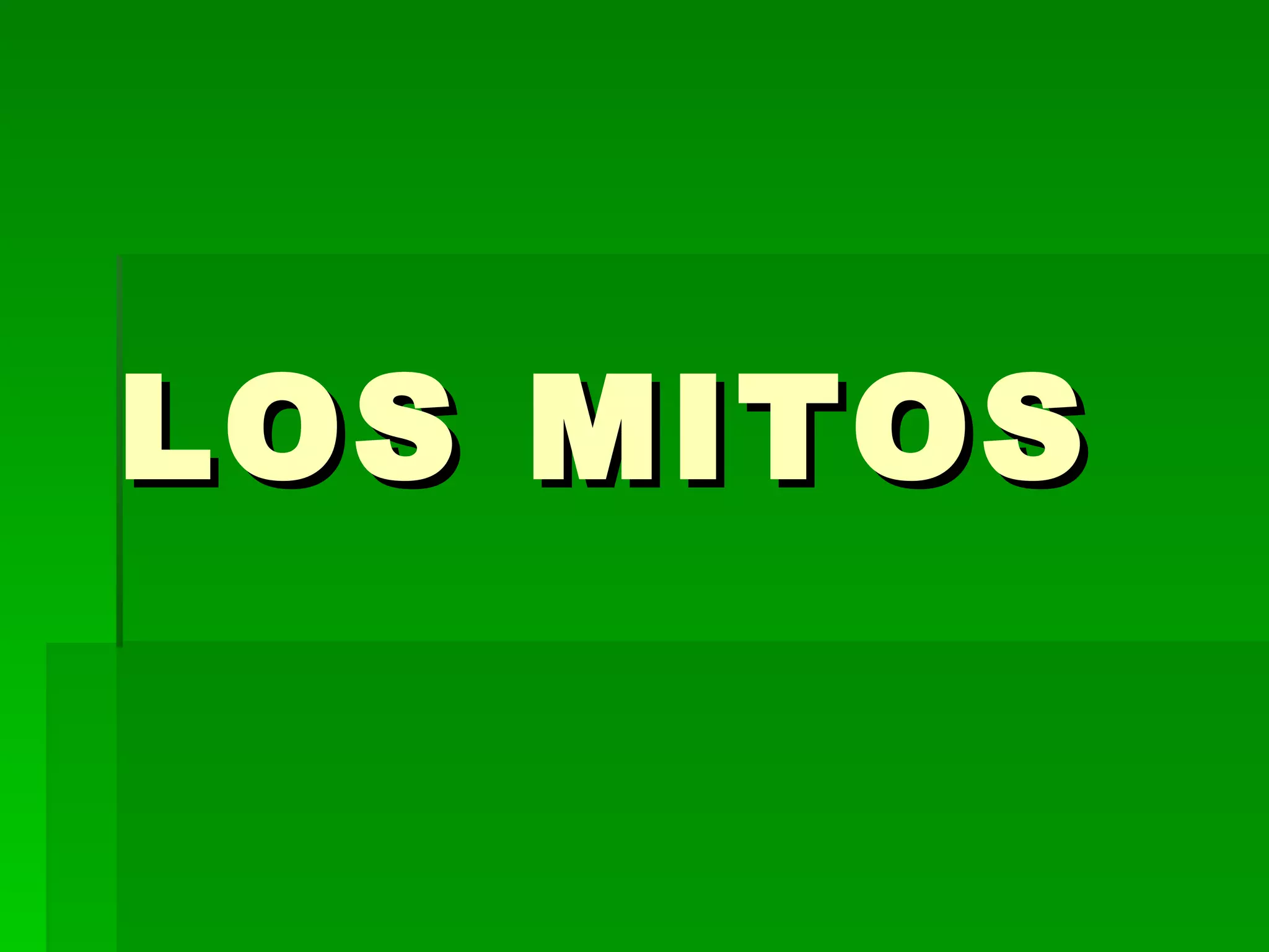 Este documento define los mitos como relatos tradicionales sobre seres sobrenaturales que explican el origen del mundo, los dioses, los seres humanos, las cosas y las instituciones. Describe varios tipos de mitos, incluyendo mitos cosmogónicos sobre la creación del mundo, mitos teogónicos sobre el origen de los dioses, mitos antropogónicos sobre el origen de los seres humanos, mitos etiológicos sobre el origen de cosas, técnicas e instituciones, y mitos escatológicos sobre el