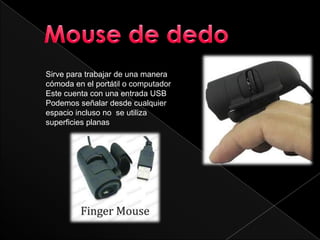 Existen varios tipos de mouse, incluyendo el mouse mecánico que usa ruedas y pulsos para mover el cursor, el mouse óptico que usa un láser para detectar movimiento con mayor precisión, y el trackball que contiene una bola que se mueve con el dedo para mover el cursor sin mover la mano.