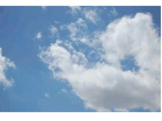Los cuatro principales tipos de nubes son: cúmulos, que son nubes algodonosas grises asociadas con días soleados y posibles tormentas; estratos, nubes grises que dan un aspecto triste al cielo en otoño e invierno pero se dispersan durante el día en primavera y verano indicando buen tiempo; nimbo, nubes de color gris oscuro que producen precipitación; y cirros, nubes blancas y delgadas cuyo aumento en el cielo predice un cambio brusco del tiempo en las siguientes 24 horas