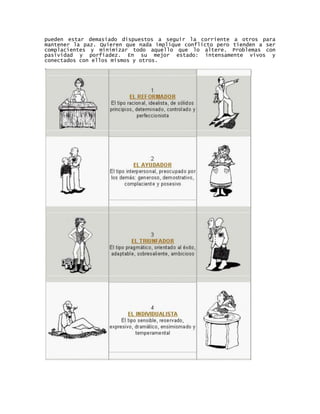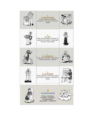1) Resume los 9 tipos de personalidad del Enneagrama, describiendo brevemente las características fundamentales de cada uno.