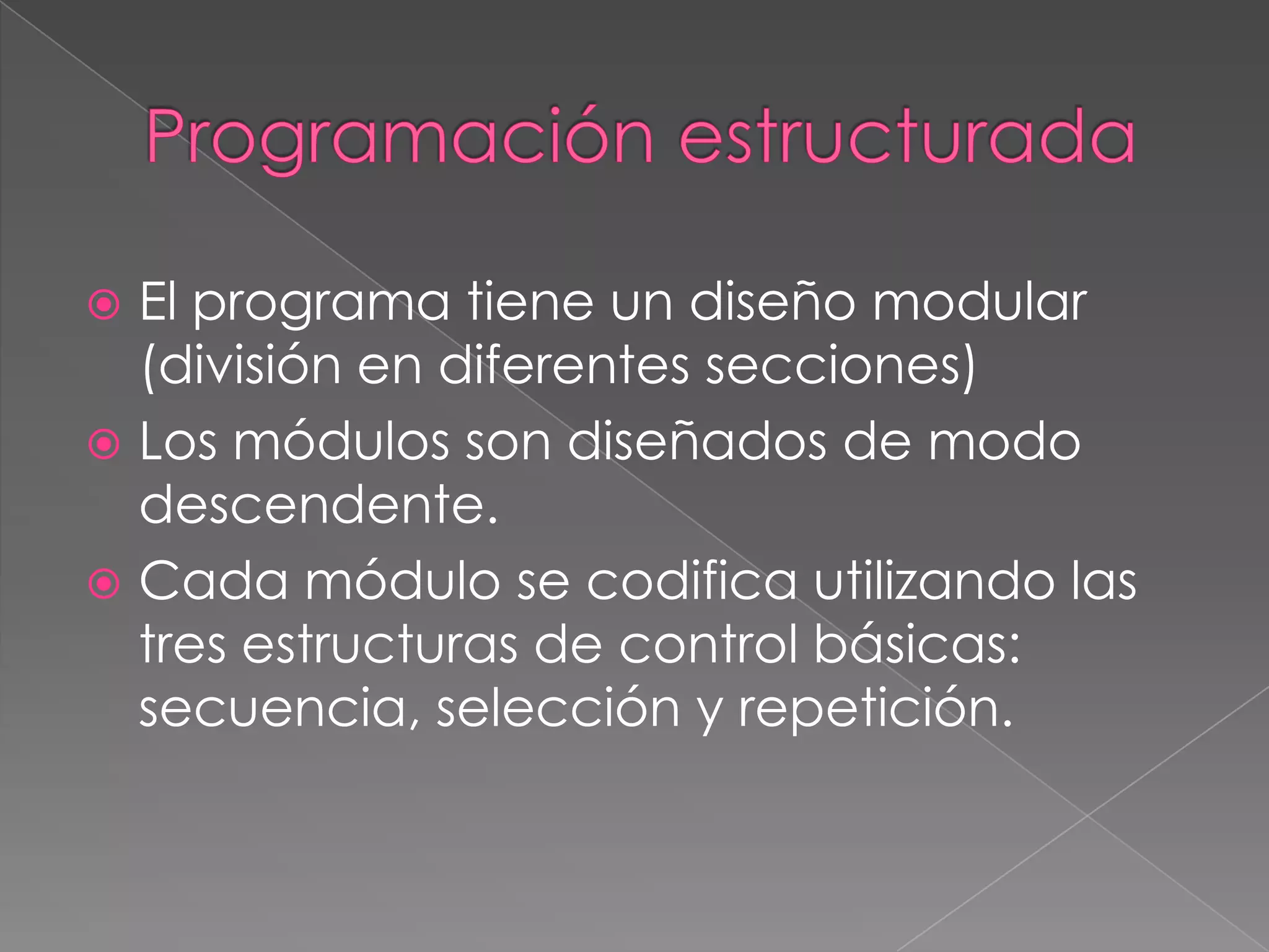 El documento describe la programación estructurada y orientada a objetos. La programación estructurada utiliza un diseño modular, un enfoque descendente y tres estructuras de control básicas. La programación orientada a objetos construye programas como colecciones de objetos que son instancias de clases relacionadas por herencia.