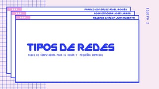 Este documento describe diferentes tipos de redes de computadoras, incluyendo redes de área personal (PAN), redes de área local (LAN), redes inalámbricas de área local (WLAN), redes de área metropolitana (MAN) y redes de área amplia (WAN). Define sus características principales, ventajas y desventajas. Proporciona referencias sobre cada tipo de red.