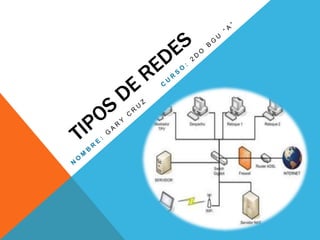 El documento describe los diferentes tipos de redes clasificados según su sistema operativo (procesamiento centralizado o distribuido) y según su alcance geográfico (red de área personal, local, metropolitana o extendida). Explica que las redes de procesamiento centralizado usaban una sola computadora central mientras que las de procesamiento distribuido usan múltiples computadoras conectadas para compartir recursos. También define cada tipo de red según su alcance, desde una red personal de 10 metros hasta una red amplia que puede cubrir países enteros