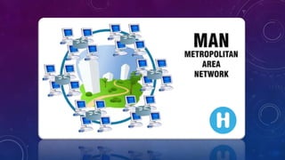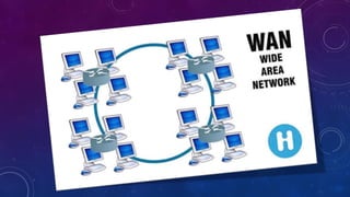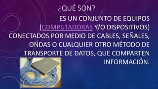 Una red es un conjunto de equipos como computadoras y dispositivos conectados mediante cables, señales u ondas que comparten información. Existen diferentes tipos de redes como las redes de área local (LAN) que conectan equipos dentro de un edificio, las redes de área amplia (WAN) que se extienden a distancias mayores como entre ciudades, y las redes metropolitanas (MAN) que proveen servicios en un área geográfica extensa usando fibra óptica o par trenzado.