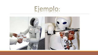 El documento describe varios campos de la robótica avanzada, incluyendo la robótica situada, basada en la conducta y cognitiva, así como la robótica de desarrollo, evolutiva e inspirada en la biología. El objetivo general es crear robots inteligentes y autónomos capaces de funcionar en entornos complejos.