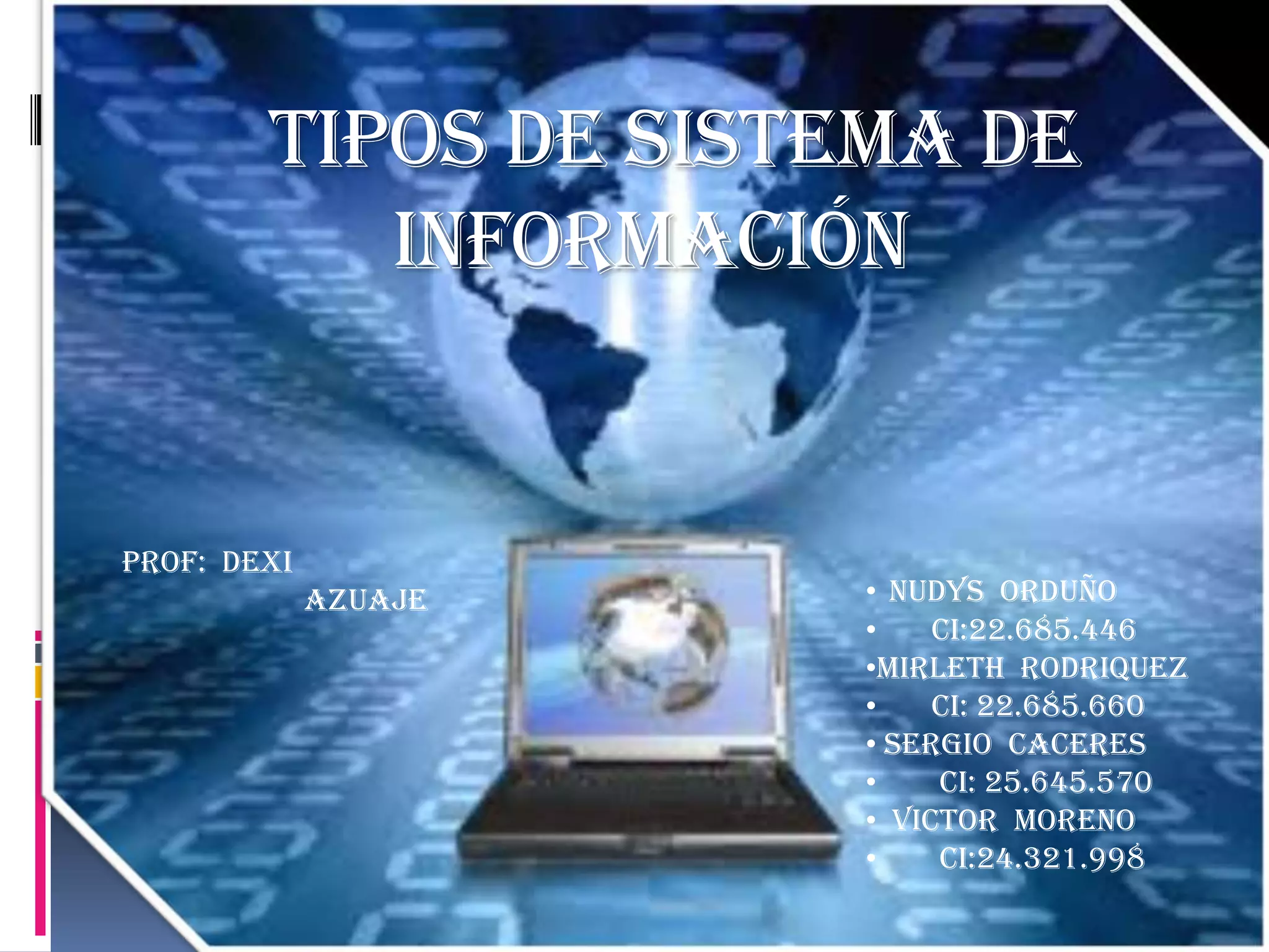 1) Los documentos describen diferentes tipos de sistemas de información utilizados en las organizaciones como sistemas de procesamiento de transacciones, sistemas de información gerencial, sistemas de soporte a decisiones y sistemas de información estratégicos.