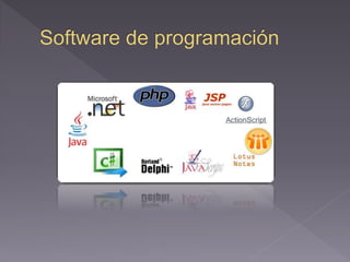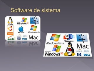 Los sistemas de software se dividen en tres categorías: sistemas de aplicaciones, sistemas operativos y sistemas de desarrollo. Los sistemas de aplicaciones incluyen programas como procesadores de texto y hojas de cálculo. Los sistemas operativos gestionan los recursos del hardware y ejecutan otros programas. Los sistemas de desarrollo se utilizan para crear nuevos programas de software.
