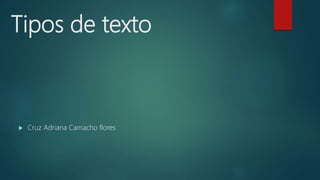 El documento resume los diferentes tipos de textos, incluyendo textos expositivos, argumentativos, narrativos, descriptivos, científicos, jurídicos, administrativos, literarios y humanísticos. Describe las características y estructuras de cada tipo de texto.