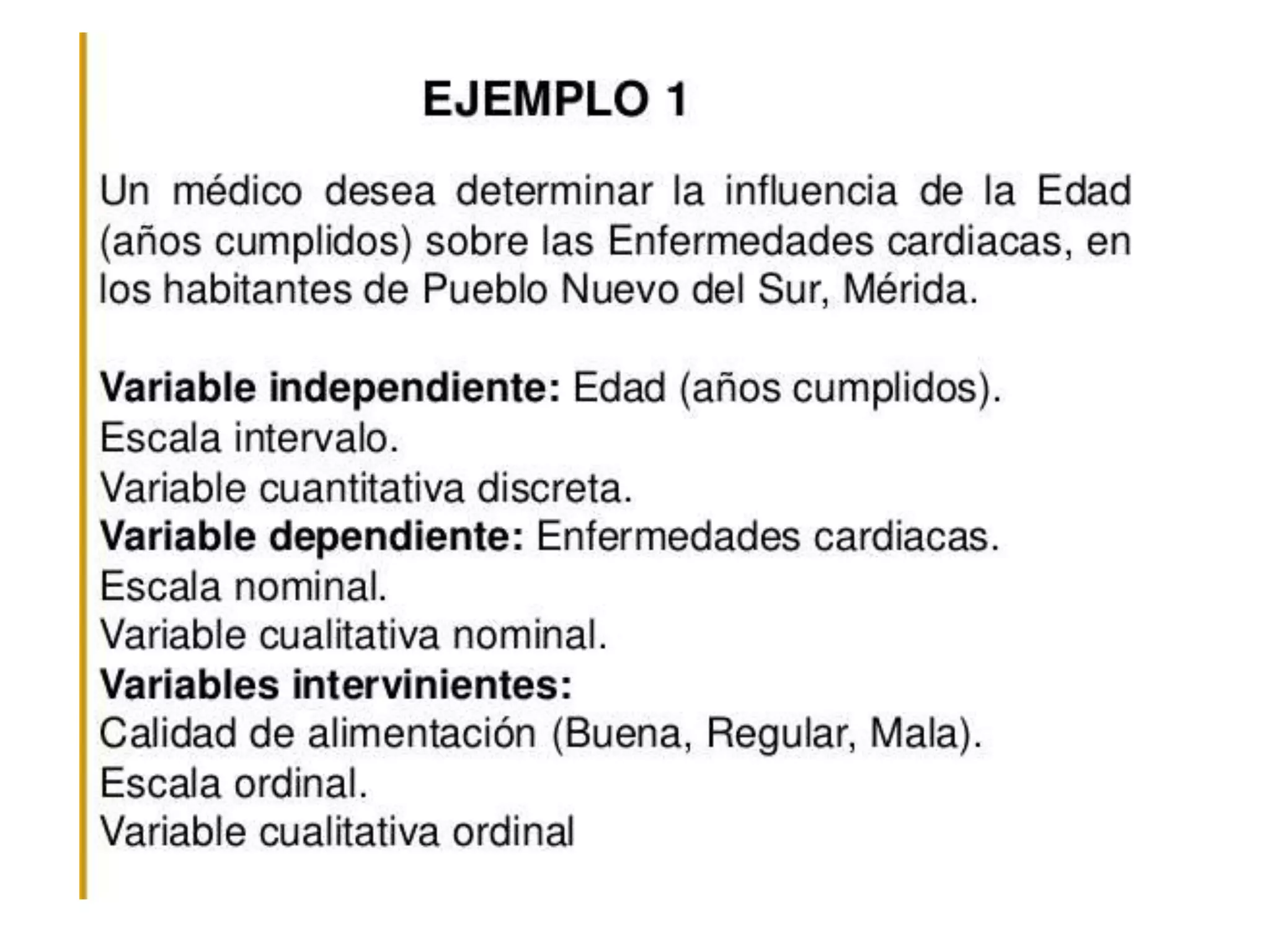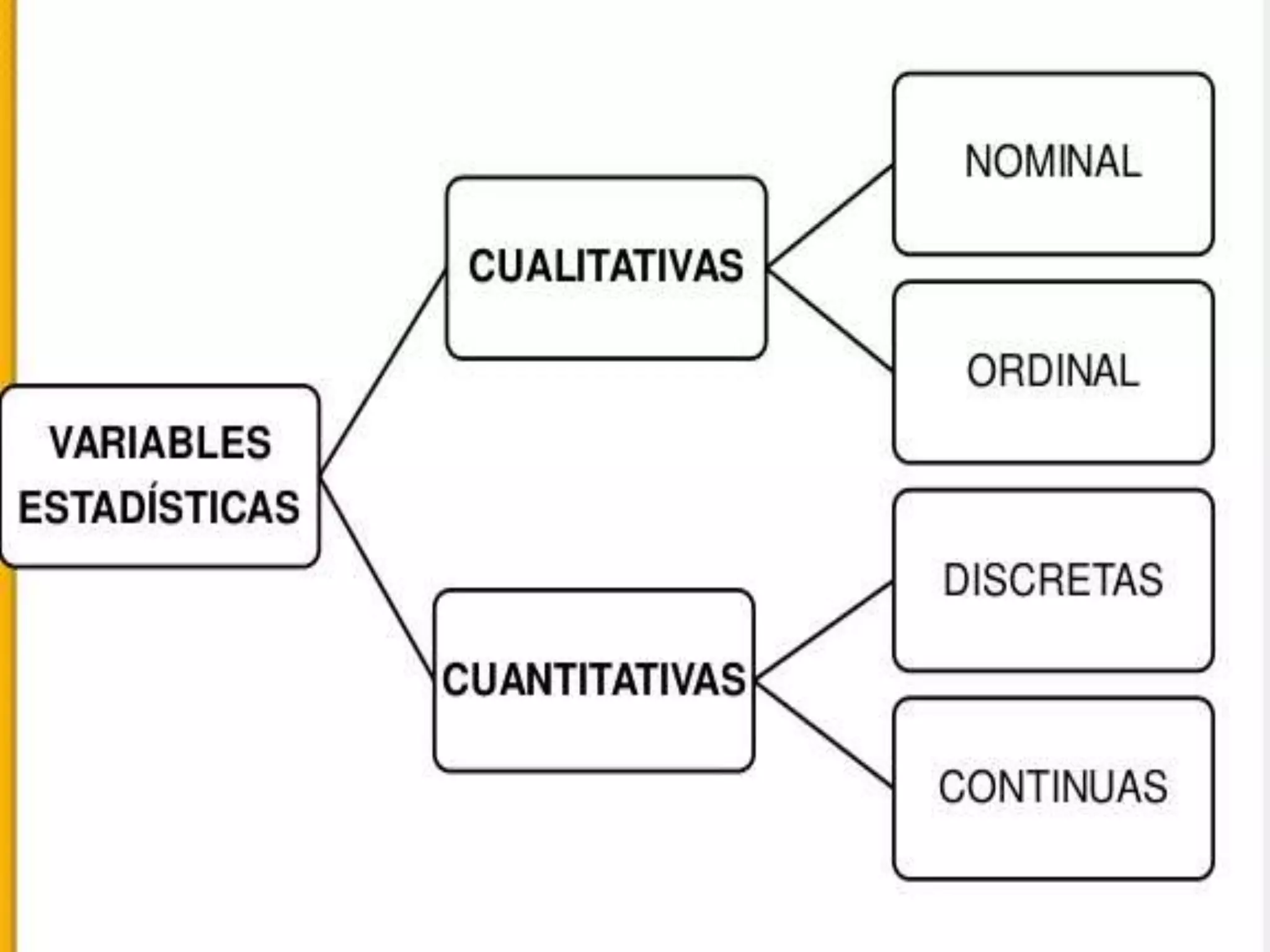 El documento describe tres tipos de variables estadísticas: variables cualitativas, que clasifican elementos en categorías; variables cuantitativas, que miden observaciones de forma numérica; y ejemplos de cada una como estado civil, estatura y número de pupitres.