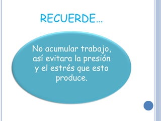 El documento proporciona consejos para educadores, incluyendo organizar el trabajo de manera esquemática para evitar el estrés, realizar actividades grupales para fomentar lazos entre estudiantes, y mantener una buena relación con otros profesionales y padres para apoyar el aprendizaje de los estudiantes. También recomienda que los educadores utilicen la tecnología para acercar los contenidos a los estudiantes y les permitan participar activamente en su propio aprendizaje.