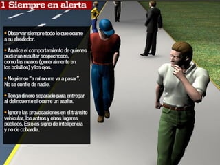 en esta presentacion usted podra visualizar los diferentes escenarios, que le permitiran preveer que se convierta en una victima de los delincuentes.