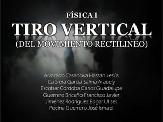 El documento habla sobre el tiro vertical y la caída libre. Explica que los cuerpos en caída libre siguen las ecuaciones del movimiento rectilíneo uniformemente variado sustituyendo "a" por la gravedad "g". También analiza la aceleración, velocidad y altura máxima durante la subida y bajada, concluyendo que el tiro vertical sigue las mismas leyes de la caída libre.