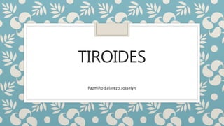 Este documento resume la anatomía, fisiología y trastornos más comunes de la glándula tiroides. Explica cómo la tiroides sintetiza hormonas que regulan funciones como la temperatura corporal, tasa metabólica y lípidos, y lista pruebas para evaluar su función. Describe hipotiroidismo y hipertiroidismo, sus causas, y las neoplasias malignas más frecuentes. Finalmente, cubre abordajes quirúrgicos de la tiroides y posibles complicaciones.