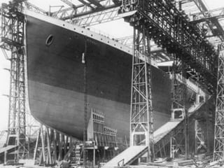 El documento proporciona información detallada sobre el RMS Titanic, incluyendo sus especificaciones técnicas, su construcción en los astilleros Harland and Wolff en Belfast entre 1908-1912, y su primer y último viaje. Algunos de los detalles clave son que medía 269 metros de eslora, fue el buque más grande construido en su época, y desafortunadamente se hundió en su viaje inaugural en el Atlántico Norte en abril de 1912 después de chocar contra un iceberg.