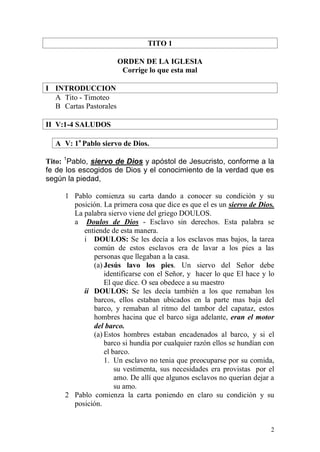 Pablo comienza la carta a Tito presentándose como siervo de Dios y apóstol de Jesucristo. Su ministerio está alineado con la fe de los escogidos de Dios y su conocimiento de la verdad se evidencia en una vida piadosa. Dios manifestó su palabra a través de la predicación, la cual fue encomendada a Pablo. Tito es llamado un verdadero hijo en la fe común, y Pablo le desea gracia, misericordia y paz de Dios Padre y del Señor Jesucristo.