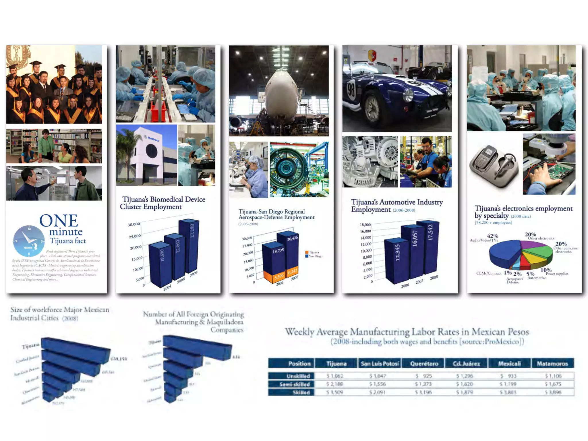 El documento analiza el desarrollo industrial de Tijuana desde la agricultura postguerra hasta la industria de la información, destacando el impacto de la industria manufacturera en la economía local y en el sistema educativo superior. Se detalla la evolución de programas como el Bracero y el Programa de Industrialización de la Frontera, que facilitaron la creación de empleos en la región. Además, se menciona la responsabilidad corporativa de las industrias de la información en cuanto a su apoyo a la comunidad y el medio ambiente.