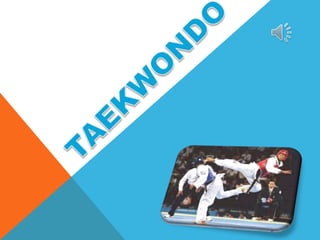 El documento resume el taekwondo, incluyendo sus orígenes coreanos, estilos principales (ITF y WTF), modalidades de competición (técnica fundamental y combate), equipación requerida y grados.