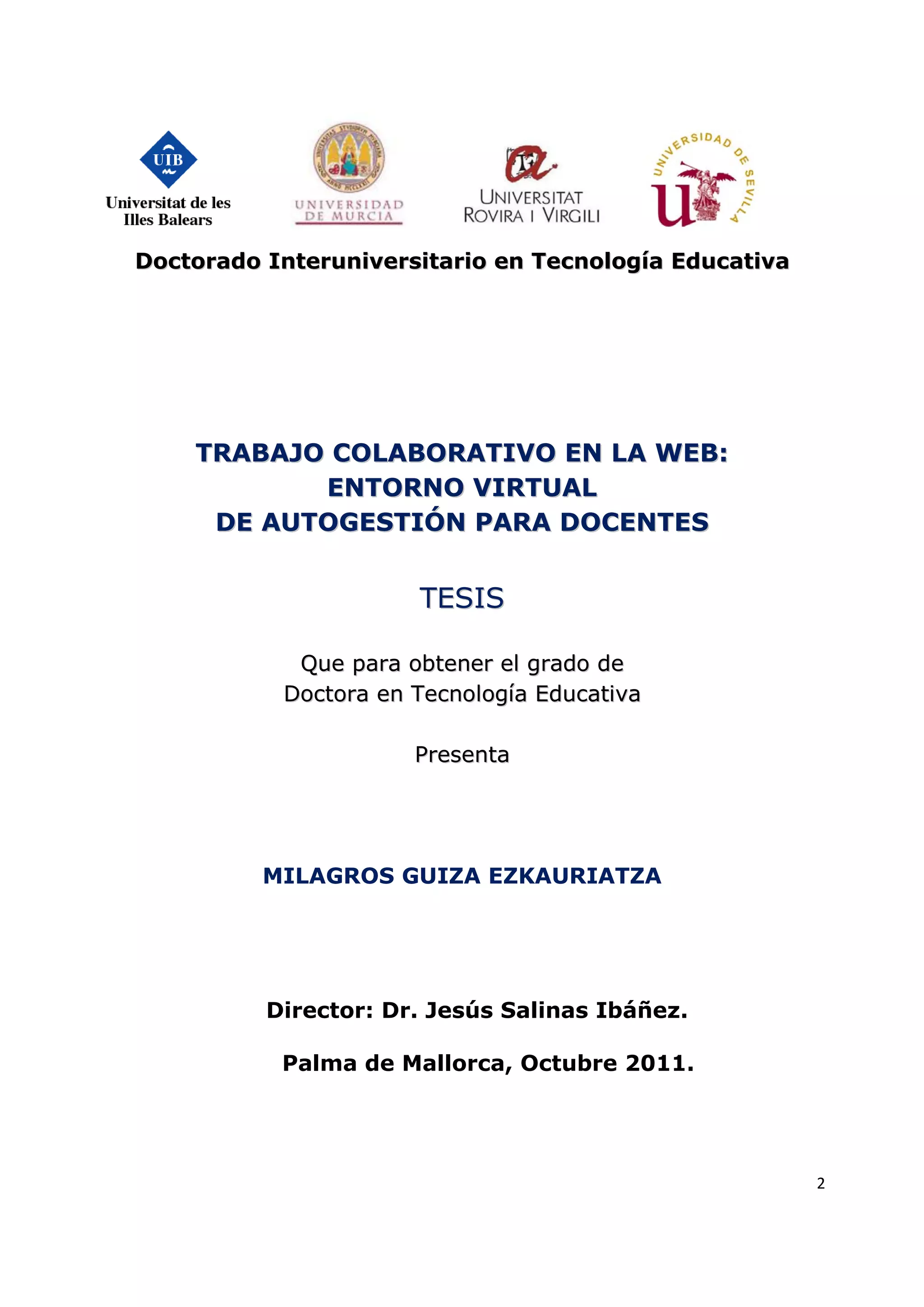 Este resumen describe dos estudios realizados sobre el uso del trabajo colaborativo entre profesores universitarios. El primer estudio analizó las herramientas, actividades y estrategias utilizadas por 24 profesores en clases virtuales. Los resultados mostraron que los profesores con más antigüedad aplicaban más el trabajo colaborativo. El segundo estudio diseñó, desarrolló e implementó un entorno virtual llamado EVAD para que los profesores analizaran, aprendieran y aplicaran el trabajo colaborativo. Diez profesores participaron y cin