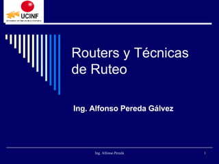 El documento describe cómo funcionan los routers y el proceso de enrutamiento. Los routers examinan la dirección de destino de los paquetes y utilizan tablas de rutas para determinar la mejor ruta de enrutamiento. Los protocolos de enrutamiento dinámicos como RIP y OSPF permiten que los routers intercambien información para mantener actualizadas sus tablas de rutas.