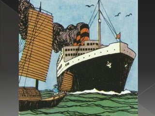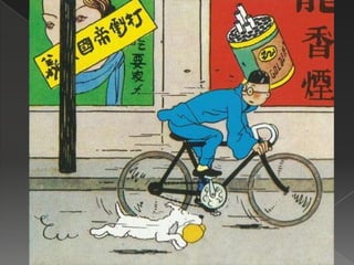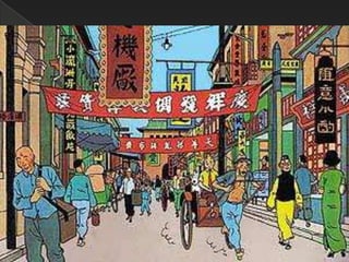 Este documento resume la trama de un libro de Tintín. Tintín viaja a Shanghai, China para investigar el tráfico de opio. Se enfrenta a traficantes como Mitsuhirato y finalmente descubre una cura para un veneno que causa locura. El documento también proporciona contexto histórico sobre las Guerras del Opio y la invasión japonesa de China.