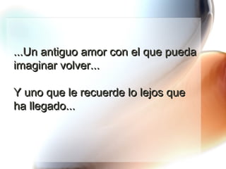...Un antiguo amor con el que pueda imaginar volver...  Y uno que le recuerde lo lejos que ha llegado...