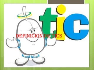El documento define las Tecnologías de la Información y la Comunicación (TIC) como los elementos y técnicas usados en el tratamiento y transmisión de información, principalmente de informática, internet y telecomunicaciones. Explica que los docentes deben cambiar su forma de comunicación y su rol de proveedor de información a facilitador. También describe las ventajas y desventajas de las TIC en la educación, así como cómo los docentes pueden integrarlas en el aula de manera efectiva.