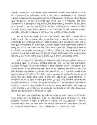 1. Manuel, un príncipe, se enamora de Lucía, la hija de un panadero, mientras visita una panadería.