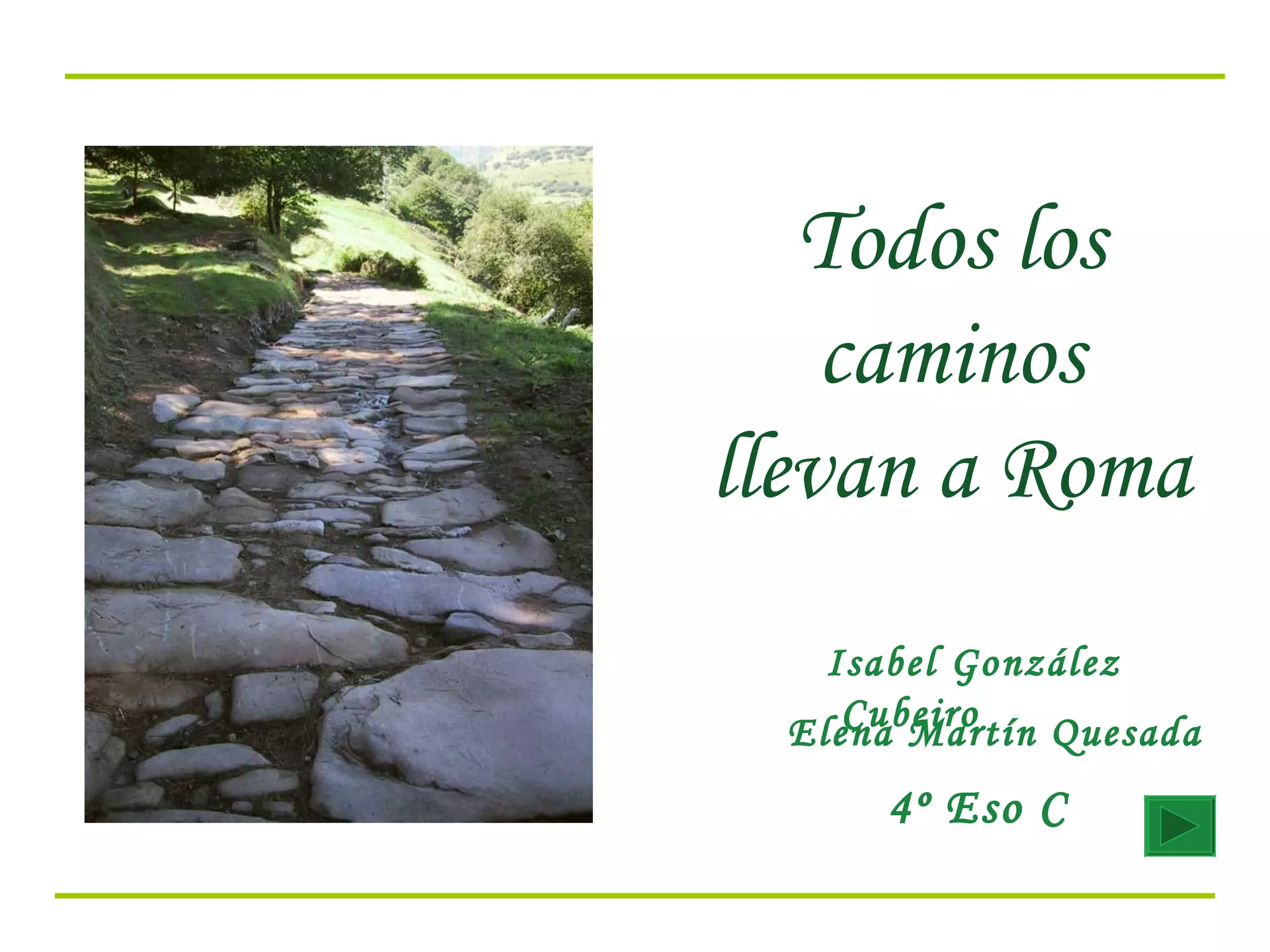 El documento describe las calzadas romanas y la red viaria del Imperio Romano. Las calzadas romanas eran rectas y anchas, conectaban las principales ciudades del imperio para el movimiento rápido del ejército. La primera calzada fue la Vía Apia construida en el 312 a.C. entre Roma y Capua. Había diferentes tipos de calzadas como las públicas, vicinales y privadas. Algunas de las principales calzadas en la península itálica e Hispania fueron la Vía Apia, Vía