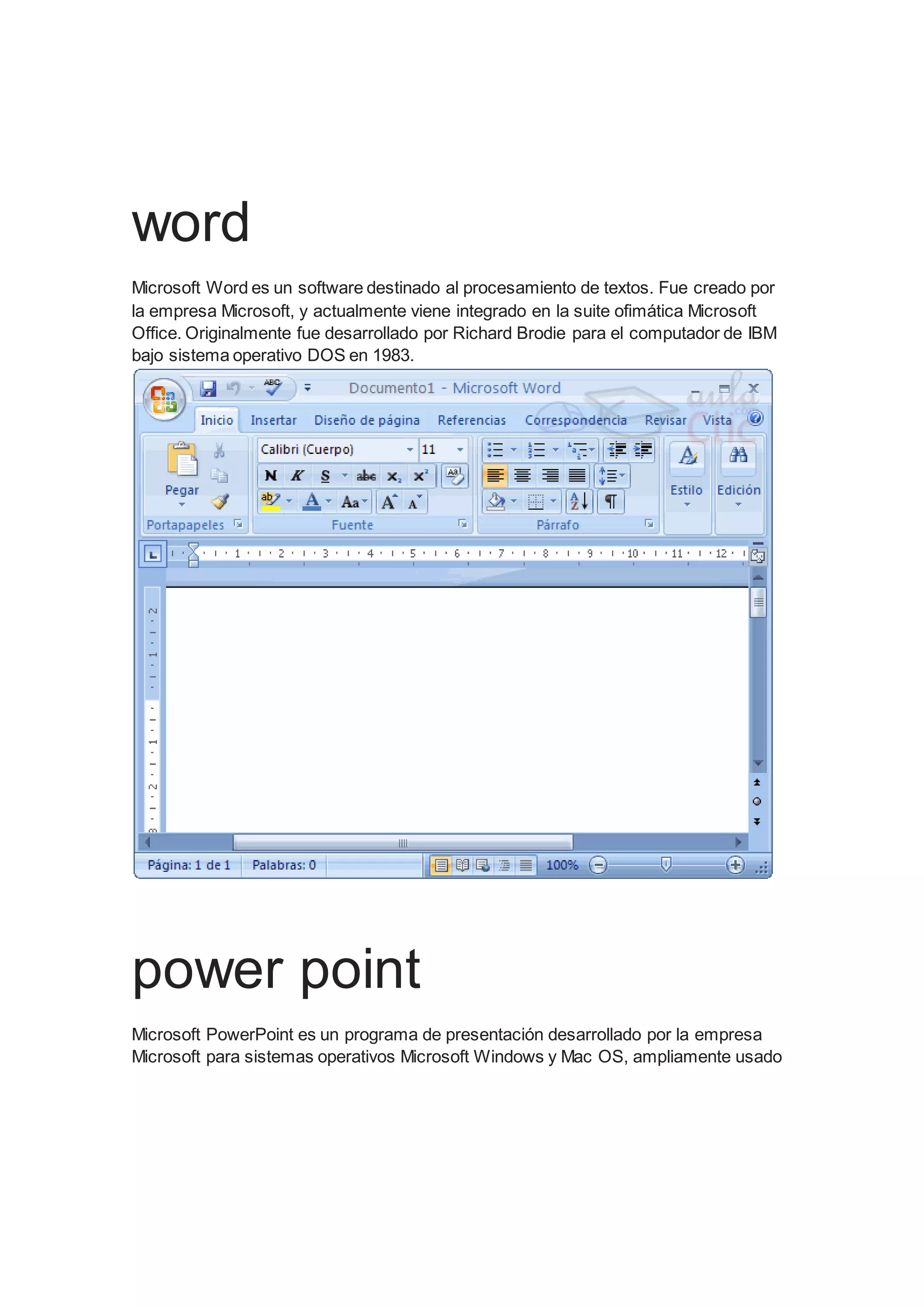 El documento describe brevemente varios programas de Microsoft como Microsoft Word, Microsoft PowerPoint y Microsoft Paint. También describe otras herramientas como Movie Maker de Windows, Pixton para crear cómics, Tagxedo y Wordle para crear nubes de palabras, YouTube como sitio de videos y Prezi para presentaciones no lineales.