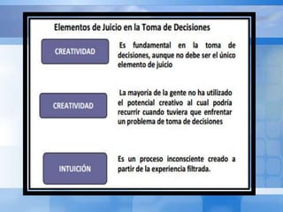 1. El documento trata sobre el tema de la toma de decisiones, específicamente sobre los procesos, criterios y ambientes en los que se toman las decisiones.
