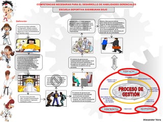 El documento describe las competencias necesarias para el desarrollo de habilidades gerenciales. Explica que los gerentes son los empleados de más alto rango en una organización que toman decisiones para lograr los objetivos. También describe las tareas gerenciales como la planificación, organización, coordinación y control. Finalmente, destaca algunas de las habilidades necesarias para los gerentes como tomar decisiones, ejercer autoridad y delegar tareas.