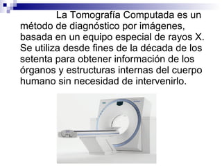 La tomografía computarizada espiral multicorte (TEM) es una técnica de imagen médica avanzada que permite obtener múltiples imágenes del cuerpo en fracciones de segundo. Los tomógrafos modernos tienen múltiples líneas de detectores que permiten estudios más rápidos y menos radiación para el paciente. El TEM se utiliza para una amplia gama de aplicaciones, incluyendo estudios del corazón, pulmones, abdomen, extremidades, columna vertebral y cráneo.
