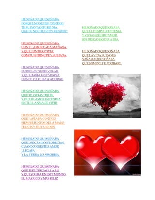 El poema describe los sueños del hablante sobre una persona amada. En sus sueños, viven juntos felices como un príncipe y hada, pasean de la mano por campos florecidos, y el amor que comparten los hace sentir ricos y felices. Aunque solo son sueños, el hablante expresa que siempre amará a esta persona.
