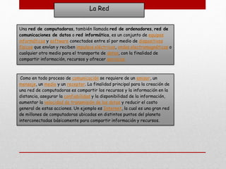 El documento describe diferentes tipos de topologías de red, incluyendo punto a punto, bus, anillo y malla. Explica que una topología de red se refiere a la forma en que los nodos de una red están interconectados física o lógicamente. Describe cada tipo de topología, señalando que una red punto a punto conecta dos nodos directamente, una red de bus usa un canal compartido, una red de anillo pasa datos en un solo sentido alrededor de un circuito cerrado, y una red de malla conecta cada nodo con todos los dem