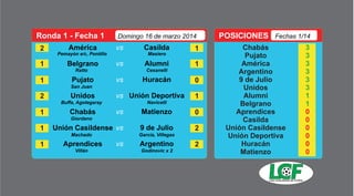 Ronda 1 - Fecha 1 Domingo 16 de marzo 2014 POSICIONES Fechas 1/14