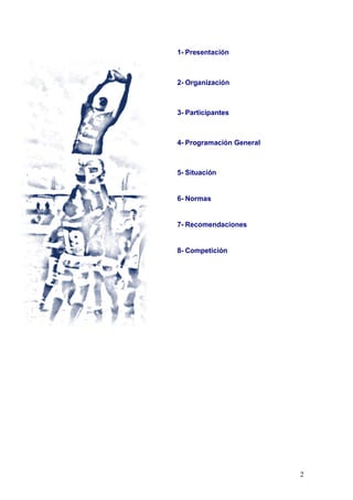 Este documento proporciona información sobre el Campeonato de España de Categorías Inferiores de Rugby que se celebrará en Valladolid los días 14 y 15 de mayo de 2011. Más de 1,500 jugadores junior de rugby de toda España participarán en las categorías de Alevín, Benjamín, Prebenjamín, Jabato y Linces. El evento contará con alrededor de 4,000 asistentes incluyendo jugadores, entrenadores, familias y público. El Campeonato se organizará en varios campos con partidos programados para cada categoría