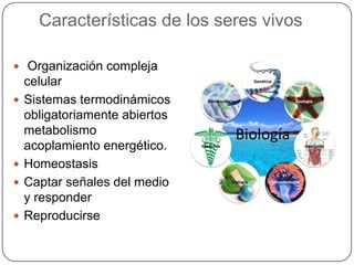 Este documento presenta información sobre conceptos fundamentales de biología. Explica que la vida se originó en la fase acuosa de la Tierra primitiva, donde se formaron las primeras moléculas orgánicas en el caldo primigenio. También describe la teoría celular, indicando que todas las células provienen de otras células preexistentes y que los organismos están compuestos de una o más células. Por último, resume las características generales de las células procariotas y eucariotas, así como de las células human