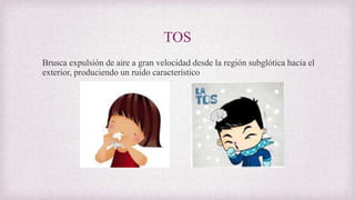 Este documento describe la semiología del aparato respiratorio, centrándose en la tos, la expectoración, la disnea y su clasificación y abordaje. Describe los mecanismos fisiopatológicos subyacentes a estos síntomas, sus causas, características y exámenes requeridos para su evaluación. Además, detalla cómo se manifiestan en diferentes enfermedades respiratorias como asma, EPOC, neumonía, entre otras.