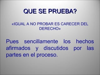 Este documento describe los diferentes tipos de medios de prueba que pueden utilizarse en un proceso judicial, incluidos los testimonios de terceros. Explica que los testimonios son declaraciones de personas ajenas al proceso sobre hechos de los que tienen conocimiento. También define las características y clasificaciones de los testigos, así como las diferencias entre testigos y peritos. Además, detalla los deberes y obligaciones de las personas al rendir testimonio ante un juez.