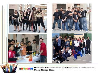 Los adolescentes que emigran enfrentan múltiples tensiones al tratar de encontrar su identidad durante la pubertad en un nuevo contexto, mientras resuelven conflictos de lealtad entre su cultura original y la nueva, y entre sus aspiraciones y sus limitaciones reales. El documento propone facilitar la participación sociocultural de los adolescentes inmigrantes y fomentar la convivencia intercultural aprovechando actividades de ocio.